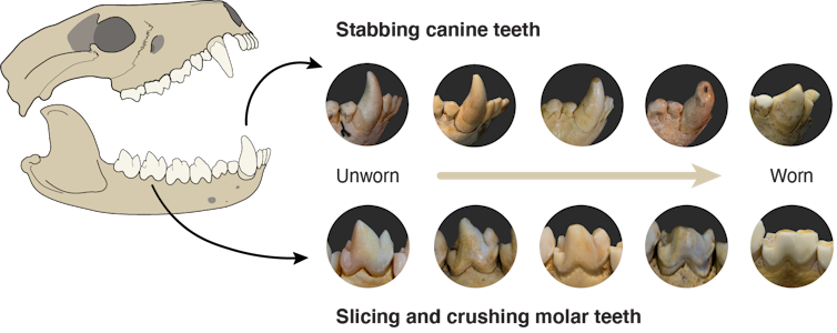 But regularly crunching through bone comes at a cost: extreme tooth wear. In our new study, we analysed the skulls of nearly 300 devils, and show how regularly crunching through bones wears a devil’s teeth down from sharp-edged weapons to blunt nubbins.